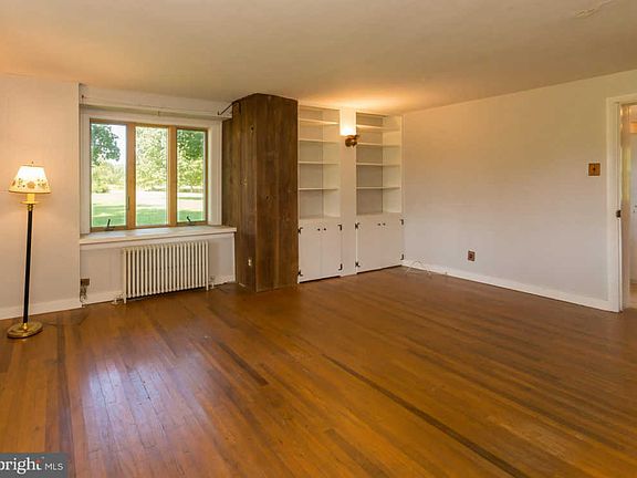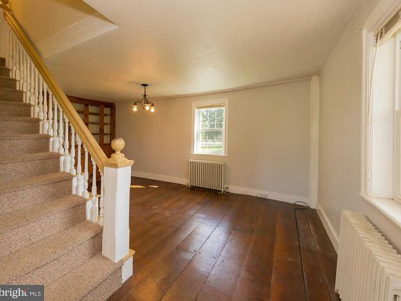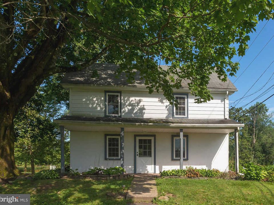 Situated off a quiet country road on a scenic 1.2 acre corner lot this turn of the century colonial farmhouse welcomes you to a time gone by. Located in the award winning Central Bucks School District, this home offers 2 floor living, 4 bedrooms, 1 full bath, wooden floors, exposed beams, curved staircase, custom built-in shelving, bookcases, cabinets and newer windows. The covered front porch welcomes you home and provides a place to unwind as you enjoy the peace and tranquility of nature, flower gardens and your surroundings. Enter the living room bright with windows and views of the out of doors. Beautiful hardwood flooring, custom built bookcases and cabinets make this room a comfortable gathering place for family and friends. Airy and full of natural light, with an abundance of cabinets for storage, the eat in kitchen is the perfect place to enjoy family meals. Sure to delight is the curved wooden stairs that leads to the second floor. Imagine holiday meals and special dining occasions in the dining room with its wide plank wood floors and huge custom built in china cabinetry. The laundry room provides washer and dryer hookups, storage cabinets and serves as a mudroom exiting to the side yard. Upstairs 4 bedrooms all with plenty of natural lighting share a hall bath. Be charmed by the exposed ceiling beams featured in two of the bedrooms. A walk up attic provides tons of storage area. There is additional storage in the unfinished basement complete with Bilco doors to the out-of-doors. The driveway provides ample parking, turnaround space and leads to the detached oversized 2 car garage with generous area for a workshop and storage. The small shed is the perfect place for your gardening needs. Minutes to Doylestown, convenient to shopping, top medical facilities, easy commuting to Routes 611, 413 and 202, and adjacent to Jennifer Schweitzer Park with ball field and playground area, this country home packs a powerful punch with low taxes, no association fees and plenty of privacy. Listing agent is related to Seller.