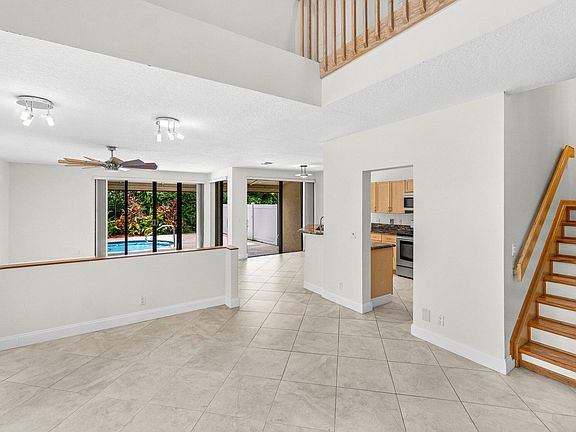 Quiet oasis end unit 3 bedroom, 2.5 bath townhouse on end of cul-de-sac within the best school district in the S. Florida that has been meticulously maintained, renovated, and updated. Two car garage, and private rear deck with a pool and plantings makes for a calming refuge, while inside a recently completely renovated master bath completes your personal pampering. Over 2,000sq ft of modern living space includes very large master suite. Tile on 1st floor and wood on 2nd completes the luxury touches. Third floor loft offers storage or living options. Recent appliances are included with one year old high-end refrigerator. New metal roof in 2022, accompanied with new awnings and gutters at same time. Private pool refinished in 2021, and deck refinished with flagstone look in 2023. 6-year-old AC unit with new evaporator coil in 2024. Included in sale is a 12,500w generator that has been integrated into the house's electrical system to ensure seamless integration. Generator can provide 100% backup power in the event of power outage. Conveniently located just minutes from top-rated A+ schools, the beach, FAU, Mizner Park, dining, shopping and more.