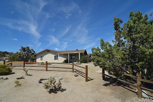 WESTERN HILLS ESTATES - This 3 bedroom, 2 full bath home is perfectly nestled amid large, mature junipers and giant boulders, live in complete seclusion and privacy with a lovely view out every window, while only 5 minutes away from shops and grocery stores. If you want to feel "away from it all" yet still live on paved roads and close to the amenities of town, this is the house for you. You definitely don't have the cramped feel of a subdivision when are this close to nature with all kinds of wildlife and bird watching literally out your window and the Joshua Tree National Park an easy 20 minutes away, or ... you can head out and hike in the boulders without ever getting into your car! The lot to the west of this home is also available. The "bonus room" is a great playroom for kids, Monday Night Football, craft room, collections, etc. It's a sunny and fun place to hang out and cozy in the winter with the wood-burning stove blazing. RV Access with RV Dump on property. This home can also be purchased with the lot next door (MLS OC15249769) to allow you to build dream or keep the space open.
