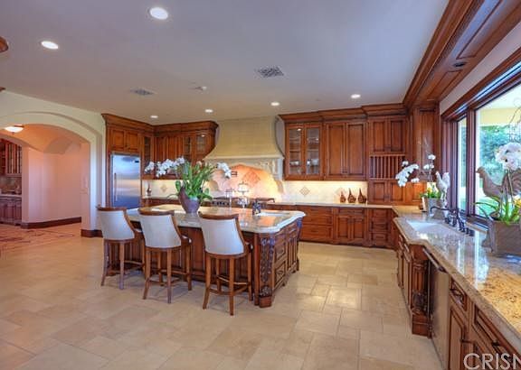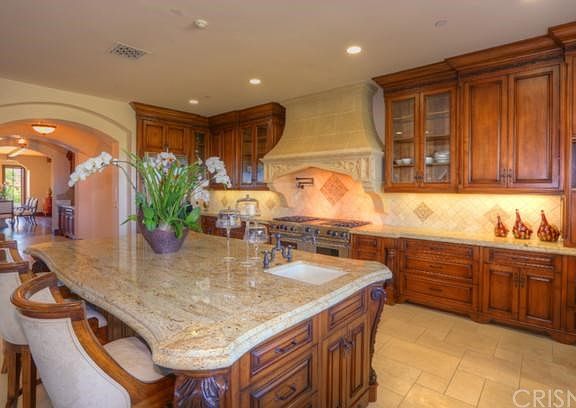 Absolutely gorgeous Country French Estate with panoramic views. Spectacular two-story entry opens an elegant dual staircase and sliding walls of glass. Superbly finished with excellent quality and craftsmanship throughout. Features include a chef's gourmet kitchen with huge center island, custom home theater with 125" widescreen and 7.2 surround sound, beautifully finished custom library, game room with wet bar and outside waterfall, large formal dining room with open beam ceiling and adjacent wine cellar, spacious family room with large custom fireplace, large luxurious master suite with volume ceiling, all stone bath, steam shower, spa, tub, large dual custom closets, 2 fireplaces, walk-out balcony and forever views. Amenities include a slate roof, stone & plank hardwood floors, "invisible" speaker system, granite & marble counters, all stainless steel appliances, Espresso center, mirrored elevator, multiple security cameras, barbecue & entertaining center, sparkling pool & spa with water feature, stone patios, mature oak and pine trees, fountains, lush landscape, privacy, and a wonderful private ambiance.
