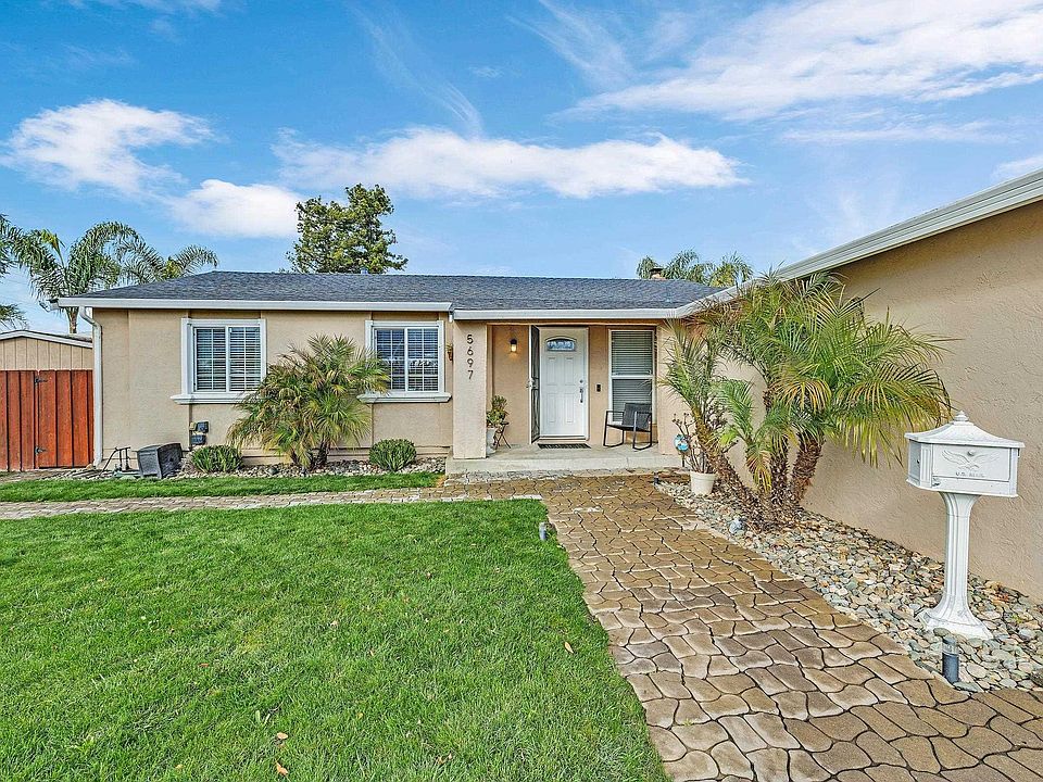 Single-story and stay-cation living at its best in Livermore on a large, corner lot. Remodeled kitchen with new in-island Kitchenaid gas range, granite countertops, stainless steel sink and faucet, subway tile backsplash, and new electrical run for cabinet underlighting that was added. Refrigerator, washer, and dryer are included in the sale. Backyard boasts an inground pool, above ground hot-tub with cover and steps, waterfall, large gazebo over artificial turf, raised garden bed, spacious custom-built shed with windows and skylights that match the home- providing a lot of additional storage, bonus space for hobbies, etc. 3/2 home has updated bathrooms and an extra large closet with built-ins in the primary bedroom. Living room has a wood burning fireplace with custom stone facade. Dual pane windows with blinds and updated paint throughout most of the home. Nest thermostat and ring doorbell included. Abundance of storage cabinets in the garage all stay. New smart garage door opener with ability to open and close remotely. Water heater was recently replaced. Accessible attic space with room for storage and pull down step ladder.