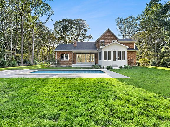 Formerly known as 792 Cox Neck Road - 5697 Westphalia Road isn't just an address - it's the moment where modern architecture meets the North Fork's easy rhythm. Tucked at the end of a country road, on two lush acres in Mattituck, this newly built farmhouse balances clean-lined sophistication with a sense of calm that only the North Fork can provide. Surrounded by over 100 curated plantings and fresh sod, the cedar-shingled exterior feels quietly commanding. Step inside and the tone continues: 7 1/2-inch white oak floors, bold fixtures, and natural light streaming through. The layout flows with purpose - at the heart, a striking kitchen anchored by Carrara marble and Thermador appliances opens seamlessly to dining and living areas. Designer lighting, custom millwork, and a wood-burning fireplace create a backdrop that's both refined and relaxed - perfect for year-round entertaining. The sunroom opens to a Gunite saltwater pool, private, heated and glimmering beneath the sky. Four bedrooms and five baths - including two serene primary suites - offer space to retreat. Downstairs, a finished lower level with 9-foot ceilings and private entrance invites possibility: guest quarters, gym, studio, or screening room. Outdoors, a detached pool house, outdoor shower, and fireplace create an effortless extension of living space. It's a home as refined as it is relaxed, surrounded by beaches, vineyards, and the flavor of the North Fork - from Love Lane's Village Cheese Shop, Lombardi's Love Lane Market to evenings at The Old Mill! Close enough to everything yet far enough from the daily grind.