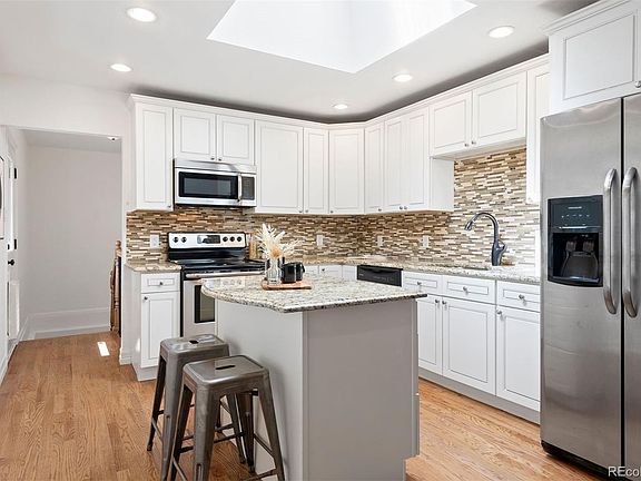 Welcome to your dream home in the heart of University Hills! This charming 5-bed, 2-bath ranch-style gem spans more than 2,400 finished sqft and blends classic appeal with modern updates. Step inside to find gleaming wood floors, fresh carpet, and a crisp new paint job throughout. The main floor boasts two amazing living areas; the front living room, filled with abundant light from the large bay window; and the cozy family room that flows effortlessly to the large back yard. The updated kitchen dazzles with white cabinetry, granite countertops, an eat-in island, stainless steel appliances, and a skylight that brightens your mornings. Unwind in the spacious primary bedroom with a modern ceiling fan and serene views. Two more bedrooms and an updated full bath, as well as a roomy dining area complete the main floor. Downstairs, a fully finished basement offers a massive game/rec area, ideal for movie nights or hosting friends, as well as two more bedrooms, another full bath and a large laundry room. Step outside to a backyard oasis with a deck, mature trees, a fire pit, and plenty of yard space for play or gardening. An attached oversized one car garage completes this amazing home. Nestled near DTC, with tons of restaurants nearby and easy access to I-25, this move-in-ready home is the ideal mix of style, size and location — don’t miss out!