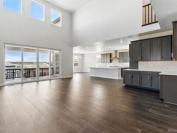 MLS#4461488 New Construction - Ready Now! The Keystone II at Hillside at Crystal Valley stands out with two dedicated studies and an airy loft—giving you room to work, play, and unwind with ease. A grand foyer sets the tone, blending traditional charm with modern finishes like glass doors and vaulted ceilings. The main level features a spacious great room with a cozy fireplace, flowing into a well-appointed kitchen with a walk-in pantry and eat-in island. Upstairs, the luxurious primary suite is joined by three additional bedrooms and the central loft. The finished walkout basement adds even more living space with a guest suite and recreation room. Structural options added include: finished walkout basement, enlarged shower and freestanding tub in primary bath, glass wall study, loft, covered outdoor living, 12' sliding glass door, fireplace.
