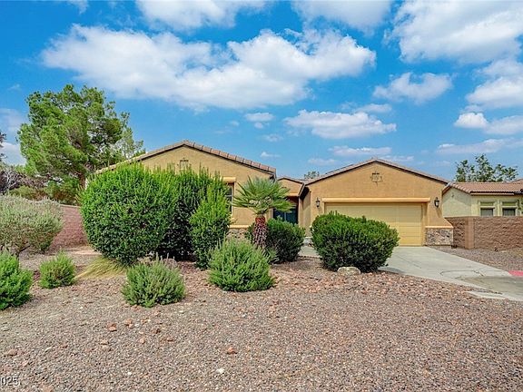 Gorgeous single story home in the beautiful Mountain Falls Golf Course community! This spacious 4 bedroom, 3 bathroom home features an open floor plan, front porch, and luxury vinyl plank flooring throughout. The kitchen boasts granite countertops, a large island, walk-in pantry, and all included appliances. Huge primary suite with TWO walk-in closets, double sinks, separate tub & shower. Second bedroom is oversized, nearly a 2nd primary. The 3rd car garage has been finished with a kitchenette increasing the living area to 2740 sq ft and has its own exterior entrance & can be closed off for an office/workshop or converted back. Ceiling fans, water treatment system, & solar panels included. Enjoy a large backyard with patio, pavers, firepit, and side yard perfect for a dog runway. Fabulous clubhouse offers a restaurant, pools, spa, fitness center, and events—all beside a lush 14-hole golf course! Only 1 hour from the Las Vegas International Airport and the city. Must see this home!