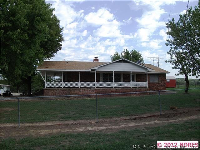3 BEDROOM 2 BATH, LARGE LIVING AREA, FORMAL DINING/KITCHEN, COVERED WRAP AROUND PORCH,FIREPLACE, WHIRLPOOL TUB, 2 CAR CARPORT AND DETACHED 6 CAR GRAGE, FENCED, POND, BARN, LOCATED ONHWY 51 1 MILE FROM FORT.GIBSON LAKE. TRAILER HOUSE OR RV HOOKUP WITH ELEC