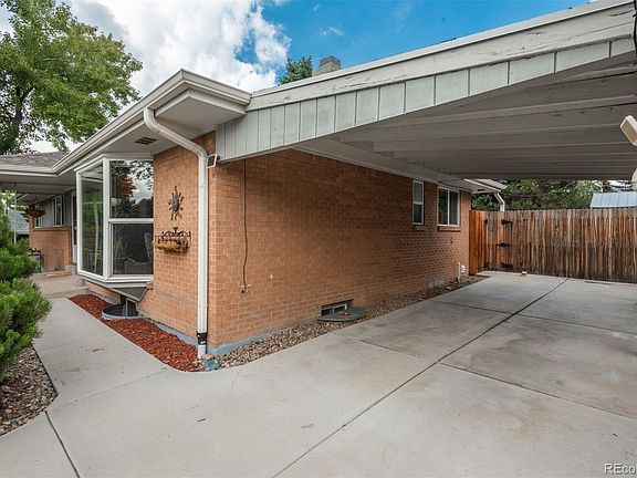 Stunning single story ranch with plenty of space inside and out! Solid brick mid-century ranch with just under 3000 SF! Originally built with 3 bedrooms up, one bedroom has been modified with french doors and used as a study. The glorious spacious living room has a huge bay window and fireplace. Dining room and updated kitchen face the backyard oasis with a new stamped concrete patio, garden area, shed, and mature trees/landscaping. Primary bedroom has two closets and windows on adjacent walls. Double sinks in the bathroom and a second 3/4 bathroom on the main floor let this home live large. The basement is finished throughout with built in storage, wet bar, and options for additional bedroom, or more office/craft/workout spaces. Solar panels, sprinklers front and back, fresh paint throughout, newer concrete work and drywall, and covered carport parking complete this stately ranch that sits well above the street. Close to Southmoor lightrail, Happy Canyon shops and restaurants, with super easy access to downtown, tech center, and quick mountain access out Hampden to 285.