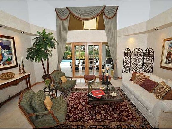 Welcome to this fabulous home located in the award winning Broken Sound Country Club. This home has wonderful outdoor space with amazing expansive golf course views. French doors from every room lead out to a huge covered patio with summer kitchen, tropical gardens and pool. This 3 bedroom plus office mediterranean style home has it all! Some of its features include newer roof, outside of home just painted, travertine floors, sunny breakfast nook overlooking the large screened patio, pool and golf course, 3 walk in closets in master, volume ceilings, and all bedrooms with ensuite bathrooms. Walls of windows create a bright, open and inviting environment in this beautiful home that is priced to sell! Membership required.