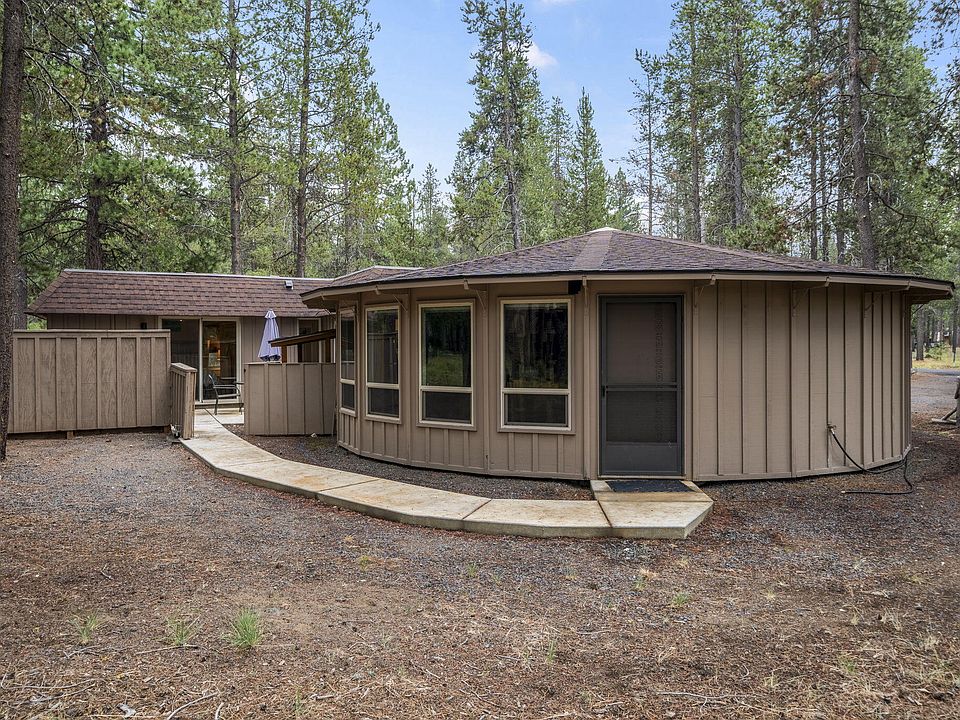 Peaceful and full of charm, this single-level Sunriver home offers 3 bedrooms and 2.5 bathrooms on a spacious lot surrounded by mature ponderosa pines. Just a short stroll from the shops, restaurants, and activities at Sunriver Village, the property has been thoughtfully updated throughout. The distinctive ''round house'' design features a wall of windows encircling the generous dining and kitchen areas, framing serene forest views. Inside, you'll find a large living room, a spacious primary suite, a junior primary with an ensuite powder room, and a classic bunk room. An enclosed concrete patio provides versatile space to entertain indoors, dine under the stars, or relax in your private hot tub. Offered turnkey and fully furnished, 1 Fawn is ready to enjoy—whether as a successful short-term vacation rental or your own private getaway.