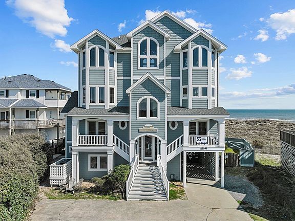 "Terrapin's Pace"; very popular vacation investment home, with an impressive 9.6% rental ratio using Owners Rents ($250,109 Advertised Rent 2024, $229,710 Owners Rent 2024), and already (27) 2025 advanced reservations in place)!!! And, that's with room to grow in the Fall. This opulent Oceanfront Home offers a unique 4 story custom design, provides everything guests and vacationers could desire, with stylish finish materials, and some of the most expansive and panoramic ocean views around….all just steps from the beach! Great pool, hot tub, & tiki bar area, multiple common areas, elevator, and views, views, views. Providing all it does, in this location, this vacation home has always been a fan favorite, generating consistent high rental income, and has another great rental season booked for 2024. Over $245k in advertised rents (over $226k owner income) for 2024! Already 27 2025 advanced reservations in place, at $247k advertised rent, for this crowd pleasing home! At 5,091 sf, (with elevator to all levels) this dramatic property offers tons of space and common areas to spread out and enjoy; including 8 bedrooms, all primary suites for comfort and privacy & with mounted HDTV’s, 8 full and 2 half baths; multiple common areas include a fun recreation room with pool table, foosball, and kitchenette, a beautiful Oak paneled library / theater room, an expansive great / living / dining area overlooking the ocean, plus an additional den / media room on the 4th level, offering a wet bar & amazing dune, beach, and ocean views! Outside enjoyment areas include ample decking all along the oceanfront to soak in the views, covered Soundside decking, and a backyard pool area that feels like your own Oceanfront private outdoor resort, with an expansive heated concrete pool, custom in-ground hot tub, and great Tiki bar for outdoor entertaining. Comfortable living in the great room with cathedral ceilings, reclaimed heart pine floors, large dining area, all with wide ocean views, and a large gourmet kitchen with custom cabinets, granite counters, and upgraded stainless steel appliances, including double wall ovens, double d/w's, gas range. Each bedroom has it’s own style, each bath features custom designed tiles, and the luxurious top level King Suite features private oceanfront deck and large upscale custom bath. At Terrapin’s Pace, you'll experience dramatic and commanding views from all over the home, enjoy all the desired amenities inside and out, just steps from the beautiful beaches of Hatteras Island. Offered fully furnished, equipped, and accessorized with attractive coastal decor. In a great location, close to the fun and conveniences of Hatteras Village, home to the fishing fleet, headboats, restaurants, shops, and easy access to the 4x4 beaches and Ocracroke Ferry. Homeowners have made many significant updates to the home recently, in quality minded fashion, Update List available. Make a point to view additional pictures and 3D Virtual Floorplan Tour at: https://listings.lighthousevisuals.com/sites/yqkrvqk/unbranded