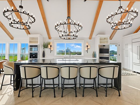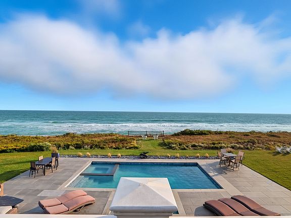 Completely reimagined, this modern oceanfront retreat blends state-of-the-art design with uncompromising quality. Positioned on the south shore, the three bedroom, three-and-a-half-bath main residence showcases walls of glass, seamless indoor-outdoor connections, and sweeping water vistas from nearly every room. Every detail reflects the highest level of quality and care, with finishes chosen for both sophistication and durability. A secondary dwelling offers a two-car garage with a full studio apartment above, complete with a kitchenette, sleeping area, bath, and private deck. Set on a private stretch of shoreline with stairs leading directly to the beach, the grounds are designed for effortless coastal living, featuring an in-ground pool, hot tub, and gas firepit, all framed by the dramatic backdrop of the ocean.