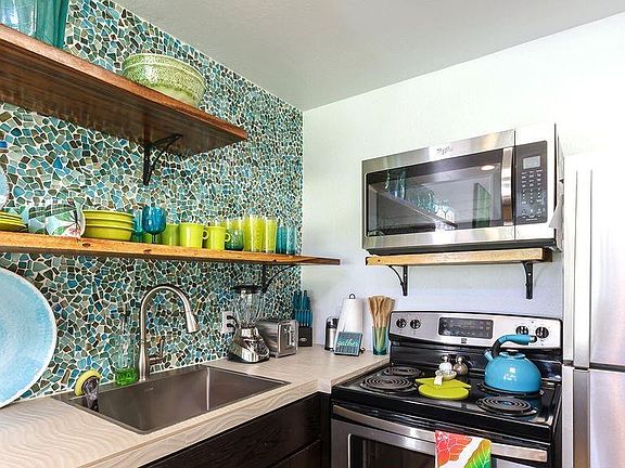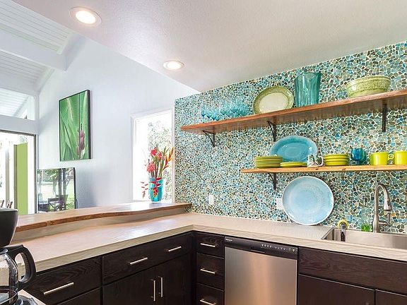 Newly renovated, featuring a one of a kind beach glass wall. The jaw dropping kitchen is an art installation of it's own. One of the unique benefits of this property is that is able to accommodate 7 or opens up to the adjourning property to accommodate 12. Tiki Aloha 2 can be reserved to make this possible. With the beach a 5-minute walk away, located in a gated community at Turtle Bay, Close to white sand beaches, walking trails along untouched coastline, championship golf courses, fine dining, casual and poolside dining, live entertainment, surfing lessons, snorkeling, a great day spa, horseback riding, and helicopter tours. World famous surfing beaches such as Pipeline and Waimea Bay, the Polynesian Cultural Center, and old Haleiwa town are close by.