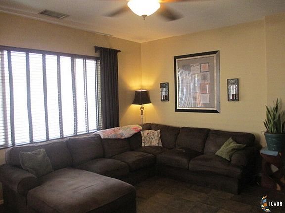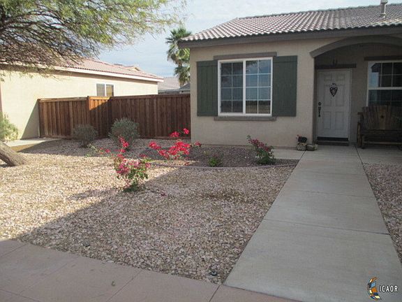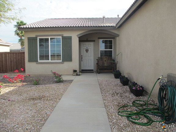 "Not too Big, Not too Small" just the right size for a young family, the perfect starter home for newlyweds or for those looking to downsize! Only 8 years new, this home is on a very wide street with no homes on the other side of the street! Quiet neighborhood, 3 minutes to the Mall, 5 minutes to 1-8 and quick access to Calexico straight down Dogwood. 3 bedrooms, 2 bathrooms, dining and family room is right off the open kitchen that includes plenty of cabinet space and a breakfast bar. Family room has a built in entertainment and storage cabinet. BONUS Side yard is wide enough to park an RV or desert toys. All ceiling fans and window coverings will stay. "Desert" landscaped front for very easy maintenance, you can spend your week ends having fun and not working on the landscaping! This home is priced to sell, call your favorite agent ASAP!
