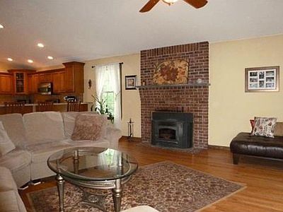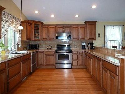 Spacious contemporary home built in 2005 on 2.5 acres of land. Beautiful open floor plan perfect for entertaining with hardwood floors, soaring ceiling and three fireplaces. Kitchen has an abundant array of maple cabinets with a coffee glaze, long bar peninsula with counter height barstools, stainless steel appliances including side by side refrigerator, combination microwave/convection oven, Fisher-Paykel double drawer dishwasher and G.E. stove. Huge master bedroom suite with hardwood floors, fireplace and master bath and plenty of clothes closets. Two additional bedrooms each with hardwood floors and closets. Second bath with ceramic tile, Kohler fixtures and tub/shower combination. Hallway with closeted first floor laundry. Full basement with concrete block foundation is ready for finish. Prepped for third full bath with all plumbing and a stall shower unit, pump system is prepared. Forced hot air oil heating system, separate hot water tank, and wood stove.