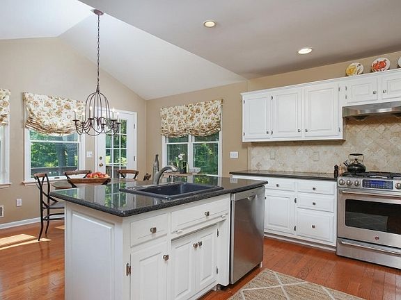 Greeted by two floors of generous living space, this beautifully updated & maintained 4 bed, 2.5 bath home features, a formal DR, formal LR, an eat-in kitchen with vaulted ceiling, HW floors & more. The updated kitchen w/SS appliances features white cabinetry, recessed lighting, & a sun-filled sitting area w/access to rear deck & entertaining area. The main floor also includes the master suite w/ walk-in closet & spa-like ensuite bath w/ jetted tub & stall-shower as well as 2 more beds & hall bath. The lower level completes the home w/ a 4th bed, half bath, & spacious family room w/ fireplace & double glass doors to the outdoor patio & deck. Dont miss the laundry area, storage room, & 2 car garage. Close to town shops, dining, parks, major highways, & public transportation, this beautiful home is a must-see!