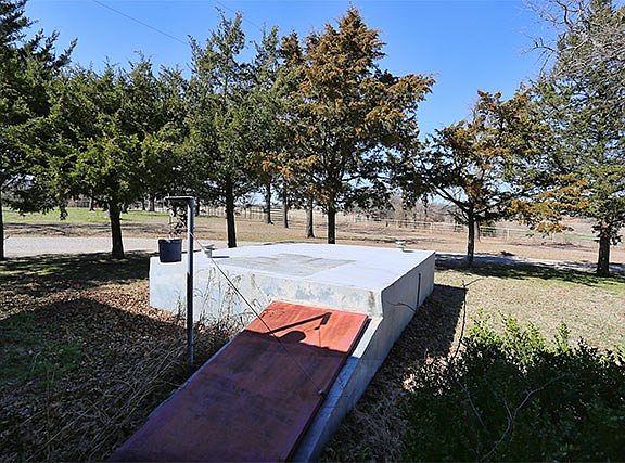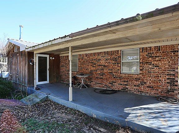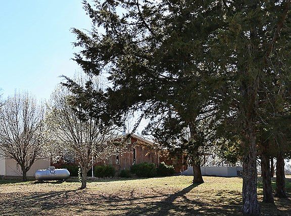 3BR 3BA brick/rock home on 10.95 acres. This property was formerly an income-producing property with space/pads for 6 mobile homes. Spacious living area and sunroom at back of home. The home has been partially set up for wheelchair conditions. Efficient galley kitchen. Shade trees, fenced back yard, and shed. Back pasture can be baled. RV storage and carport space for 4 vehicles. Large in-ground shelter in front of home for easy access.