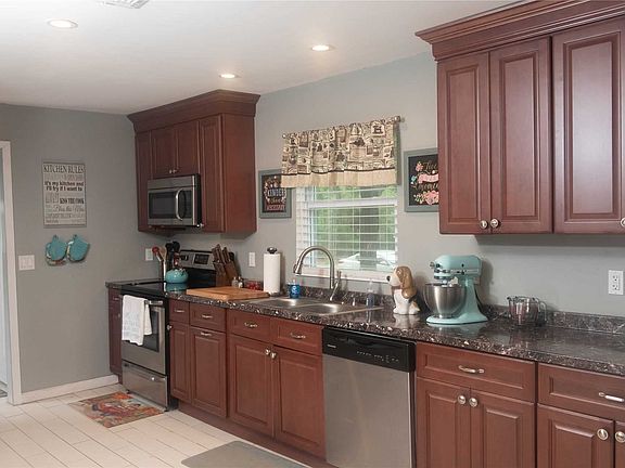 Beautiful updated ranch with large property on corner plot. The following has been replaced in the last 5 years: roof, septic system, CAC, electric, driveway, porch, and refrigerator. Full, partially finished basement with outside entrance. Huge detached garage. Large, partially fenced in yard. Don't miss out on this fantastic home!