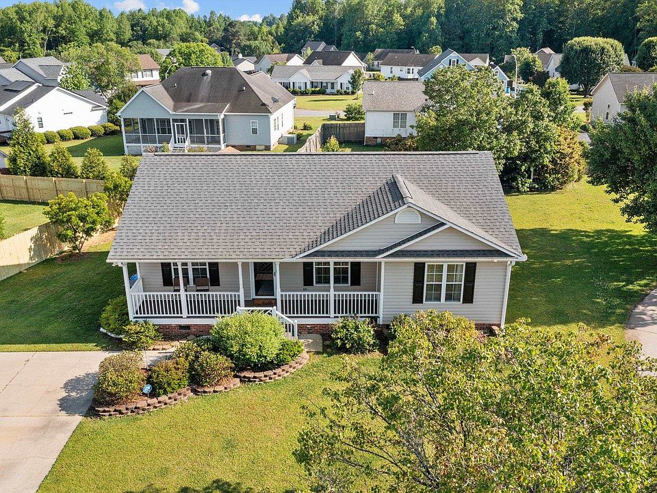 This 3 bedroom, 2 full bathroom ranch in Angier is ready for its new owners! You've got a perfect rocking chair front covered porch, a bright and open living room with vaulted ceilings, an eat-in kitchen and a spacious front and backyard. There's a shed out back to store all of your lawn equipment. You'll also find a deck and separate patio out back, perfect for grilling and entertaining! Cul-de-sac location in a neighborhood with no HOA. Located minutes from everything downtown Angier has to offer including Jack Marley Park, local restaurants and shopping. Welcome home!