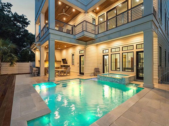 Resort-style poolLarge marble-topped islandOutdoor kitchenFamily entertainment areaBunk roomGame roomGourmet kitchen