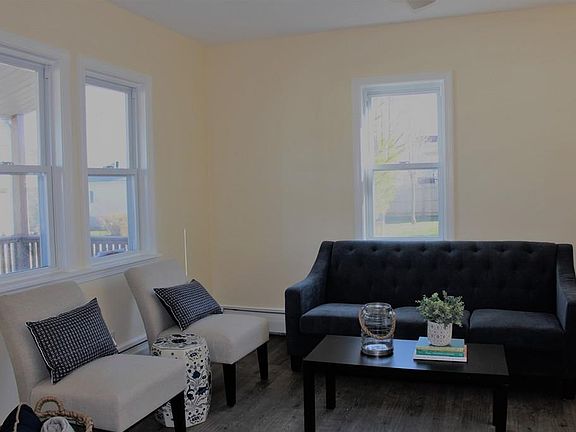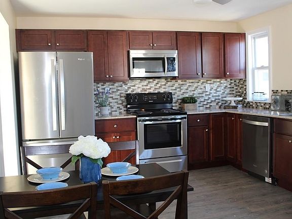 Spring is here and it's the perfect time to make this nicely refreshed property yours! Classic colonial with maintenance free cream vinyl siding with black shutters. Large eat in kitchen with brand new cherry cabinets, stunning glass tile back splash, and stainless steel appliances. Open living and dining rooms with slider to sweet deck perfect for summer grilling! Upstairs three nice sized bedrooms, reading nook, and bathroom. Outside you'll be surprised by the spacious corner lot with storage shed, garage, and driveway. Don't miss out on this beauty!