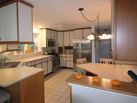 Nestled among a tree lined street sits this beautifully maintained Colonial awaiting you to call her home. Enter into your family room from your garage with covered breezeway with wood stove and high ceilings for those cozy evenings. Enjoy coffee on you three season porch overlooking your in-ground heated swimming pool in your private backyard surrounding conservation land. Entertain your guests in your dining room off your eat in kitchen and front to back living room, updated half bath with laundry round out your first floor. Retire upstairs to your master suite with closets galore and your master en-suite. Two other generous size bedrooms and updated full bathroom complete the second floor. Unfinished full basement leaves plenty of room for your own inspiration.