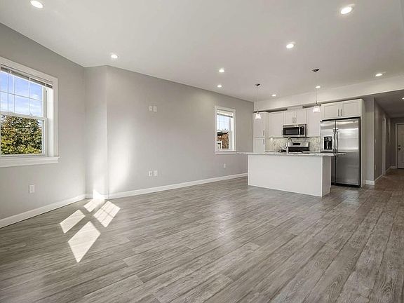 This beautiful top floor apartment has just undergone a complete gut renovation. No details have been overlooking in this fully applianced open concept kitchen with large island, quartz countertops, and stainless steel appliances. The living area has 4 large windows allowing for great natural light, perfect for relaxing or entertaining. The master bedroom is generous in size and features an on-suite bath with a large walk-in shower. The second bedroom is also good in size and has access to the second full bathroom with double vanity and tub. Additional features include hardwood flooring throughout, central heating and cooling, tankless hot water, laundry in unit and a private deck. Only 0.6 miles to South Bay Center and Newmarket Commuter Rail stop. Small Dogs and Cats, OK