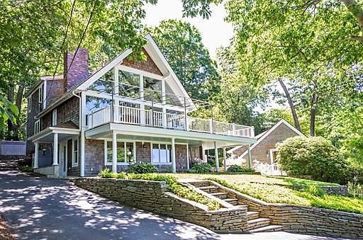 A contemporary style home built high into the hill with fabulous ocean views looking out towards Warren's Cove, Long Beach, Plymouth Harbor & Bug Light. Facing Northwest gives you those epic sunsets. This unique home was custom built by the owner. A lot of attention went into detail, quality of materials throughout and has been meticulously maintained through the years. The entire lot is professionally landscaped with mature plantings. A 4-zone rain sense irrigation system conserving on water. The gardens are set into a series of stone walls that terrace down from the backyard along the front entryway out to the driveway entrance. Towering rhododendrons line the road frontage providing beauty and privacy. A unique detached home office/studio has ocean and garden views, a bath, and separate utilities. You have a quiet neighborhood with easy access to Rt 3 and downtown. Here you have it all, Quality, Location and Priced to sell. This one won't last.