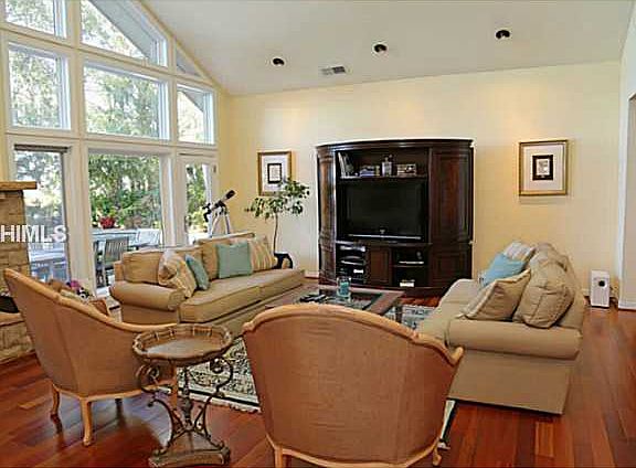 Offering the best of both worlds, this home overlooking Baynard Cove Creek with a private dock and a short bike ride to the beach, has it all! This lovely 4 bedroom 4 bath home has been renovated with new wood flooring, gourmet kitchen with granite, top of the line appliances, wine room, new baths, and a spectacular outdoor kitchen with heated pool and spa. All on one level, this is EZ living! Enjoy as a primary or secondary residence plus an excellent rental property, if desired. Unique opportunity to own Sea Pines Best! (ZT)