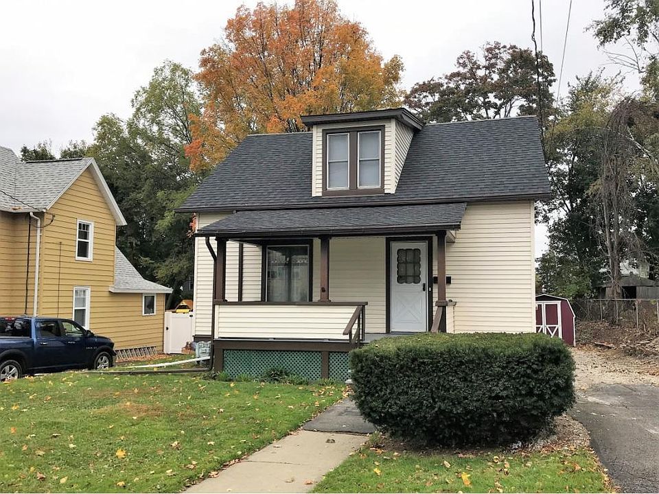 -Charming cape cod that has been nicely updated! Refinished hardwood floors throughout, original wood trim & beautiful staircase. Full tear off roof & water heater (done in 2015).Very spacious full bath on the 1st floor has laundry set up. Covered front porch, large backyard & enclosed back porch. Replacement windows, vinyl siding. Low maintenance living!