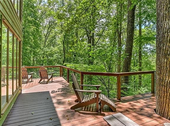 This stunning contemporary home has been renovated from top to bottom. New electrical, new plumbing, HVAC, new kitchen and appliances. Carefully renovated to keep the mountain modern theme, it has 5 bedrooms, 4 bed septic and three baths. Plenty of deck space to enjoy the mountain breeze and total privacy to retreat from the crazy world. The master suite overlooks the 22 foot vaulted ceilings and into private woods and adjoins a screened porch, perfect for an afternoon nap and a spa like master bath. The lower level has a large den and opens to a patio perfect for entertaining. Room to enjoy your favorite movie or do some artwork. Fairview Forest is convenient to Asheville, Lake Lure, Hendersonville and Black Mountain.