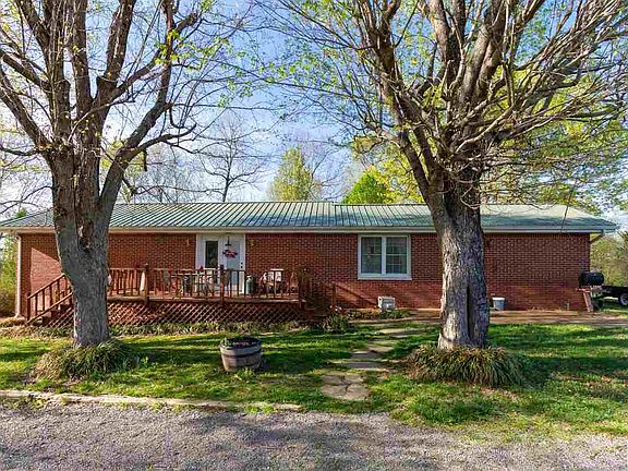 Brick house with updated windows/doors, metal roof, nice deck, some laminate floors, large kitchen with plenty of cabinets, sitting on a couple of acres in the Brewers area with a detached garage that has a bonus living quarters above it as well. You will love the pretty trees, circle drive, and sunsets out here! Main house 2 bedrooms, 1 full bath, large living room with a fireplace and the kitchen appliances stay too! The extra living quarters has 2 bedrooms, kitchen, living room, and bathroom. You could rent it out, use as a hobby room, game room, home office, business office, crafting space, man cave, home theater, and many more ideas. There are a lot of opportunities with 57 Bob Adlich Road! Priced at $121,500.