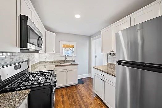 Come see this perfect condo alternative that offers private living with NO HOA FEE! Fresh paint and gleaming hardwood flooring welcomes each guest, along with the renovated kitchen, complete with stainless steel appliances and subway backsplash. A beautifully renovated bathroom offers open shelving and modern tiled tub/shower. Natural gas cooking and heating, with a young gas furnace awaiting the lucky no owners. Basement laundry, driveway for off-street parking and one lot down from the Mill Cove waterfront. This home is truly move-in ready!