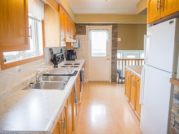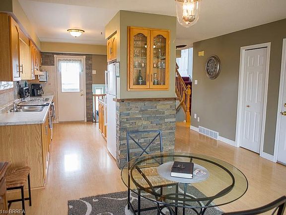 Welcome home to 57 Brick Pond Lane, with a country feeling right in the city of Woodstock. Backing onto protected green space, this home has incredible views of the trees and wildlife right in your own backyard. Offering 2 bedrooms with the potential for a third bedroom, 2 bathrooms, large windows with lots of natural light and a double car garage. Welcome your guests into the main level of this fantastic back split. Right off the front entryway is the dining room featuring a stacked stone accent wall. The dining space is open to the kitchen which offers ample cabinet space with pull-outs in many of the lower cabinets. The balcony off the kitchen is the perfect spot to BBQ. Conveniently located on this floor is a spacious 4 piece bathroom with laundry. Make your way upstairs to your own private master retreat! At the top of the stairs is a spacious living space with large picture windows flooding in tons of natural light. Need another bedroom on this level - no worries- this space could easily be converted into a bedroom. Off the living space is the primary bedroom with a walk-in closet and 3 piece ensuite with a jetted tub. Head back downstairs to the lower level. The family room is open to the kitchen above making entertaining a breeze. The beautiful fireplace with solid wood mantle and stacked stone surround gives this room a cozy feel. The family room leads out to the large deck which is the perfect place for your morning coffee or wine in the evening. With no rear neighbours the backyard is very private, peaceful and serene. Right off the living room is the second bedroom featuring a large closet & tonnes of natural light. Down another set of stairs to the unfinished basement. With the rough in for a bathroom, the electrical for a stove already run and a walk-up to the garage, the possibilities for this space are endless. The massive crawl space provides lots of storage. This is the perfect place for you to call home!