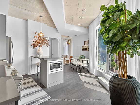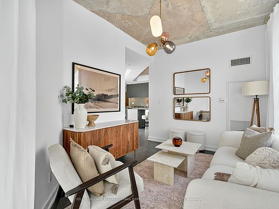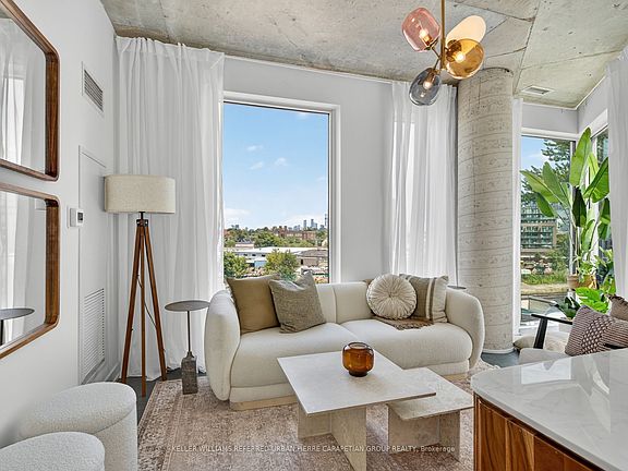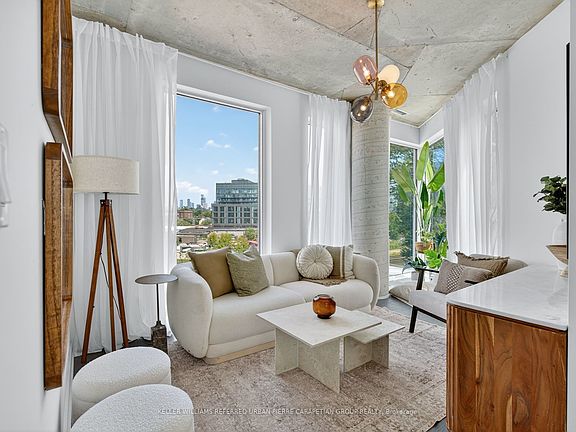 Welcome to this rare, light-filled corner suite in the coveted 57 Brock community. This spacious two-bedroom condo thoughtfully designed layout features a separate living room a true luxury in condo living with floor-to-ceiling wrap around windows its flushed with natural light and perfect for relaxing or entertaining. The kitchen and dining area open directly onto a private, oversized terrace that spans the length of the unit, offering a peaceful outdoor retreat complete with a gas BBQ hookup and water line for easy patio living.The modern eat-in kitchen features full-size appliances and dining nook. Both bedrooms are well-proportioned, with large windows and generous closet space while the primary easily accommodates a king size bed.Tucked into a quiet residential pocket of Roncesvalles and just moments from Queen West, King West, Liberty Village and Trinity Bellwoods Park, 57 Brock is a boutique, pet-friendly building with premium amenities including a co-working lounge, fitness studio, and rooftop terrace.With a Walk Score of 93 and Transit Score of 100, everything you need is just a short stroll away from parks and cafes to restaurants, schools, and shopping.A perfect blend of privacy, style, and convenience this one truly checks all the boxes.