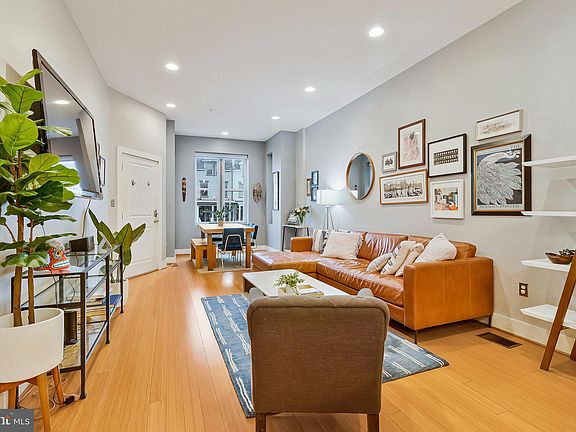 We invite you to explore 57 Bryant St NW #1, a spacious two-level condo with PARKING located in Bloomingdale, adjacent to the exciting upcoming developments at the McMillan Reservoir. This home welcomes you with its high ceilings and warm wood floors, creating a versatile living area that accommodates various furniture arrangements. The front bay area makes for a bright dining space, surrounded by windows on three sides. The kitchen, designed in a U-shape, features island seating, stylish cabinetry, marble countertops, a pantry closet and stainless steel appliances. Down the hall, a third bedroom offers flexible use as an office, guest room, or additional sleeping space. In the hallway, you'll find a charming full bath with limestone finishes and a glass-paneled shower. On the lower level, two generously sized bedrooms with en-suite baths are positioned on opposite sides of the home. The front primary bedroom boasts a cozy window reading nook, a double closet, and access to the front of the property. The rear hosts a spacious guest bedroom with a walk-in closet and bathroom with tub. Outside, the back porch provides ample space for bike storage and outdoor dining, leading to a beautifully landscaped yard with secure private parking. Just a short walk away, the developing McMillan Reservoir Campus offers an aquatic recreation center with a pool, and future plans include grocery and dining options, as well as abundant green spaces. If you're looking for a condo with low fees that feels as spacious as a house, we encourage you to visit soon and experience this charming piece of Bloomingdale.