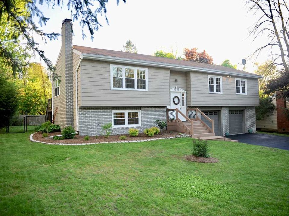 Beautifully updated executive scale raised ranch in sought after Carriage Hill Estates neighborhood with walking trail access to Vassar Farms. Bright x-large LR with WBFP opens to spacious dining room with sliders to rear deck and large attractive yard. Huge kitchen has 2 large windows, eating area and large opening to foyer/living room. All 4 bedrooms are large in size and 3 have large closets. The solid oak floors have been masterfully refinished in LR/DR/Hall and all 3 bedrooms on the main level. Lower level contains x-large BR with adjoining powder room and full size laundry inset area as well as separate family room/den. All 3 baths have been attractively updated, kitchen cabinets and countertops are newer, cook top is nat. gas and all mechanicals are new, premium state of the art and highly efficient (nat. gas boiler and hot water heater). All new high performance replacement windows, central air conditioning, new premium insulated garage doors w/ auto openers. This polished gem with gracious proportions needs nothing.