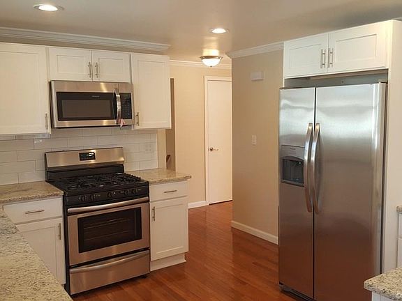 Totally remodeled split level house in an easy access Hamden location. House is like new, featuring a sparkling new kitchen with brand new stainless steel appliances, gas range, and granite counter tops. The kitchen flows into an open dining room and a large living room. All rooms have newly refinished hardwood floors, and elegant crown moldings, and new double hung windows. There is recessed throughout the living room, dining room and kitchen. On the upper level there are 3 good size bedrooms and a newly remodeled full bathroom. The lower level includes a family room, combination half bathroom and laundry with a brand new stackable washer and dryer, and entry to the attached garage. There is a deck off the house back which overlooks a private yard. Lastly the house is fueled by clean natural gas and has central air.