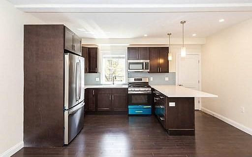 New renovated two bedroom two and a half bathrooms on the Jamaica Plain/Roslindale border. One mile to Forest Hills Station. Large private outdoor patio. Open kitchen and living room. Modern cabinets, breakfast bar, quartz countertops, and stainless steel appliances. Laundry in unit. Central A/C. Hardwood floors throughout. Master suites. High end finishes. Available 9/1. Pet friendly. No security deposit. FMR/LMR/1-Month rent Broker Fee for Move-in.