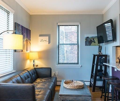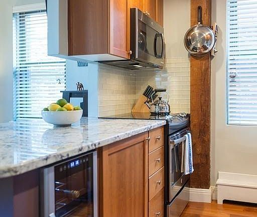 MOVE-IN DATE CHANGED This North End 1 bedroom has undergone a thorough renovation it incorporates contemporary finishes with traditional North End charm. The kitchen is appointed with granite counter tops, a breakfast bar, stainless steel appliances, and a dishwasher. The living room has plenty of natural light and is spacious enough to accommodate both a seating area and an in-home office. On the brick accent wall an air conditioning unit was installed. The European-style bathroom includes a large walk-in shower with rainfall shower head, in-unit laundry, plenty of shelving, and contemporary fixtures. In the bedroom there are two closets (both with 2 bars to maximize the space) along with plenty of space to fit a queen bed and dressers. The building offers a roof deck with captivating views of the Boston skyline and Boston Harbor.