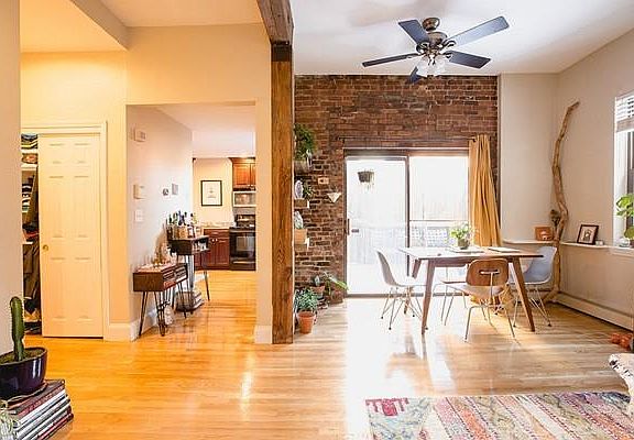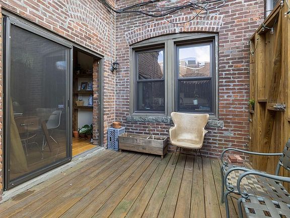 North End 2 bedroom 2 full bathroom with LARGE PRIVATE DECK just off of the living room. Newer common roof deck with exceptional views of Boston Harbor and the City skyline. Unit offers open layout with Large Living/Dining Area with Hardwood floors and exposed beams. Renovated Kitchen with Full Size Appliances. 2 FULL BATHS. Large Master Bedroom with en suite bath. There is also common laundry and private deeded storage in the basement.