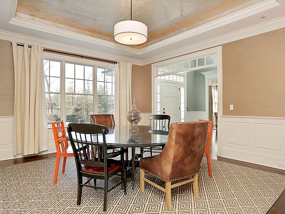 Open, Light & Stunning ~ This prominently sited stately Colonial on a scenic road has the outside designed by master landscape architect Wesley Stout featuring mature trees, gardens, heated pool, spa, outdoor shower and stone terraces. 4 finished floors of incomparable custom millwork, craftsmanship and attention to detail are noticeable within this serene setting. Some of its features include the gracious living room and dining room, a chef's kitchen with professional grade appliances opening to family room with coffered ceiling and fireplace; both the kitchen and family room open to the beautiful level grounds of the backyard. A lacquered study with built-ins, generously sized mudroom with easy access to rear stairs and the garage make for wonderful flow. The 2nd floor has 5 spacious bedrooms all en suite; one is perfect for au pair or guests includes sitting room or playroom. The 3rd floor showcases the exercise room and office/arts/crafts room. The walk out lower level is an additional 1800+ sf with first floor quality details. Amazing space for games, tv night for a crowd and 'hang out' fun with family and friends featuring incredible storage and fireplace. Don't miss this classic quality home!