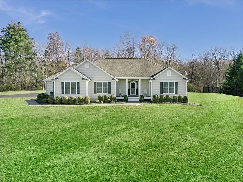 Well maintained by original owner, contemporary Ranch perched up on over 2 acres with mountain views. Located in the beautiful Albrecht Estates subdivision, heart of Pleasant Valley, in Arlington Schools. One level living at its finest, 2200 SQ FT of finished living space, 3 bedrooms, 2.5 baths. Built in 2005, home features gas fire place in the living area, tray ceilings in dining room, living area and primary bedroom, double vanity in the full primary en suite bath, two additional well sized bedrooms and full main bath. Eat in kitchen offers tons of storage, pantry space and breakfast bar. Open flow out to formal dining room and living room, complete with laundry room. Full unfinished basement with rough in plumbing and egress for future expansion, hydro-air high efficiency heating system and three car attached garage with powder room. Exterior features matured landscaping, expansive rear covered veranda; perfect for entertaining and a rocking chair front porch to enjoy the view. Excellent location, minutes to Taconic Parkway, villages of Pleasant Valley and Millbrook, great restaurants, local shops and schools! The house is just waiting for you to make it a HOME! Additional Information: HeatingFuel:Oil Above Ground,ParkingFeatures:3 Car Attached,