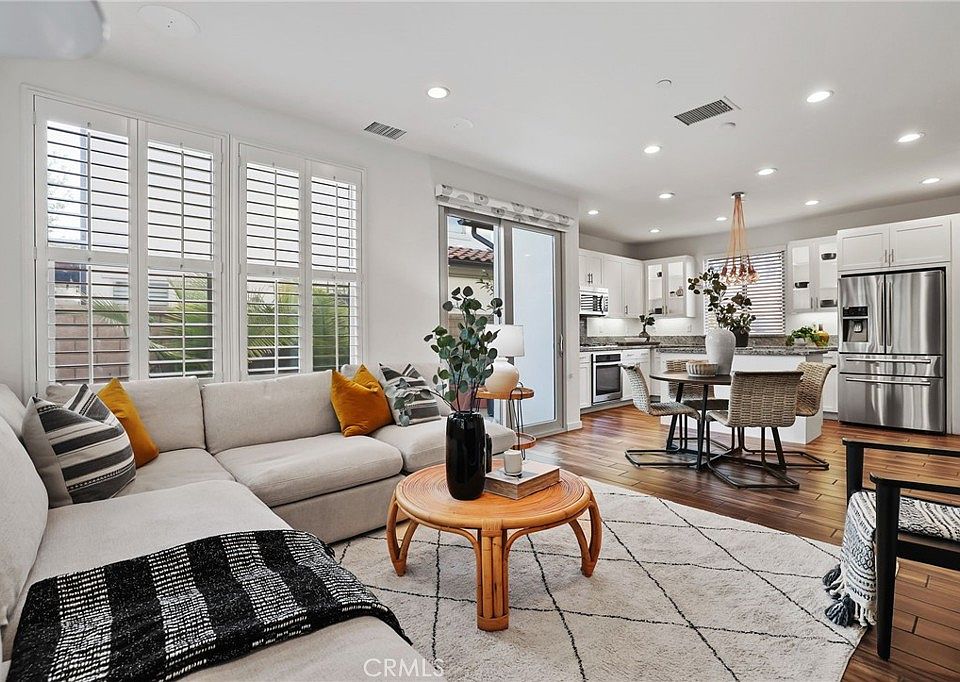 Gorgeous Home, Fantastic Lot! This Beautifully Upgraded and Meticulously Maintained Single Family Residence features 4 Bedrooms, 3 Full Bathrooms and Upgrades Throughout that create the Perfect Blend of Warmth and Modern Design. Step in the front door and immediately you are greeted with Stunning Tile Flooring that runs throughout the first floor living area. The Light & Bright Open Concept Great Room features Plantation Shutters and is Wired for Built In Speakers. The Spacious Gourmet Kitchen includes Upgraded White Cabinets with Elegant Glass Detail, Granite Counter Tops and Center Island, Stainless Steel Appliance Package, Walk In Pantry, and a Modern Light Fixture. The Highly Desired Downstairs Bedroom and Full Bathroom round out the first floor. Upstairs you will find 3 Additional Bedrooms and the Convenient Upstairs Laundry Room. Step into the Spacious Light & Bright Primary Bedroom and Enjoy the Comforts of The Spa Like Primary Bath featuring Modern Glass Dual Vanities, Upgraded White Cabinets, a Custom Tile Walk In Shower with Rainfall Showerhead and Spacious His & Hers Closets. Step outside to the Private Backyard featuring Stunning Travertine Tile & Travertine Pavers, a Relaxing Water Feature, and Lush Landscaping....Additional Home Upgrades for the Modern Buyer Include Water Softener System, 5 Stage Water Filter, Staircase Step Lights, and Additional Noise Insulation and Spacious Two Car Garage with Electric Charging Point and Metallic Epoxy Flooring. Baker Ranch offers top of the line amenities including 3 Swimming Pools, 8 Parks, Hiking and Biking Trails, Tennis Courts, Beach Volleyball, Basketball Courts, Dog Park, Clubhouse and More. No Mello Roos and Low HOA. Beautiful Home..Do not wait on this one!