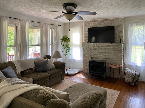 1930's farm house that has been well loved and taken care of through the years with lots of character and charm. The house floor plan has living, dining, kitchen, 2 bedrooms and bath on the main. Upstairs are 3 finished rooms with large closets. The house has a full front porch as well as a screened in back porch. Hardwood floors and carpet throughout the house. Garden space available. Dog/cat are not prohibited however pre approval is required. I year minimum lease term Water and sewage included