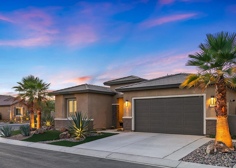 Situated on a desirable corner lot within the sought-after Del Webb Rancho Mirage community, this meticulously maintained four-year-old residence blends modern comfort with thoughtful designer detail. The solar system, including added panels, is fully paid. Distinctive features include hardwood flooring throughout, refined landscape design with premium turf in both front and rear yards, and a large pergola ideal for outdoor dining and relaxation. Inside, a chef's kitchen showcases upgraded cabinetry, countertops, appliances, and an induction range. The spacious primary suite offers a spa-style bath with upgraded counters, custom fixtures, a Panasonic heater, and custom closet organization. Additional highlights include a guest suite with new insulated windows, a versatile den or office, and an epoxy-coated garage with an upgraded door and custom cabinetry. Art lovers will appreciate the three CODA gallery installations that bring texture and personality to the interiors. The Refuge floor plan from the Retreat Series offers efficient, low-maintenance living with style. Some furnishings may be negotiated. A community dog park sits conveniently across the street, and the generous corner lot allows room for a future pool addition.
