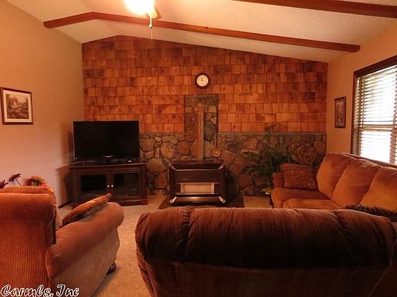 Updated 3 bed/2bath home on 4.5 ac m/l. remodel in Kitchen Baths, roof, eaves, concrete siding. Detached storm shelter and several outbuildings. Large native stone fireplace in living room. A must see!