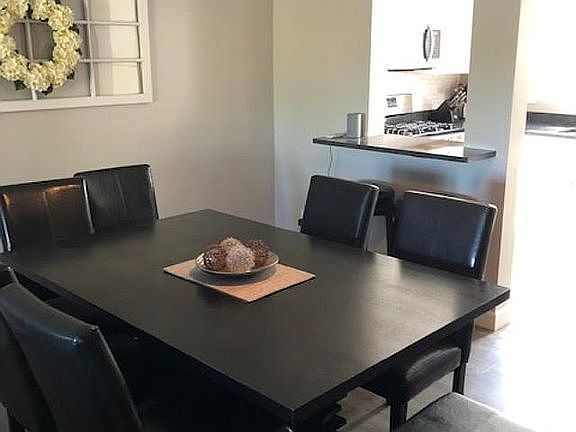 Rarely available largest end unit, remodeled in 2016 including new windows, flooring, fixtures, new totally renovated kitchen with custom soft closure cabinets, granite counters, stainless appliances, new poured concrete patio. Turn-key opportunity including all living room, dining room and bedroom furniture, 2 tv's, washer/dryer, office desk, all patio and deck furniture. Wall hangings and buffet excluded. Great for first time buyer or investor as a furnished unit (approx. $1,600-1,700 per mo.)