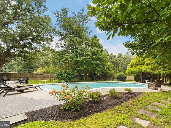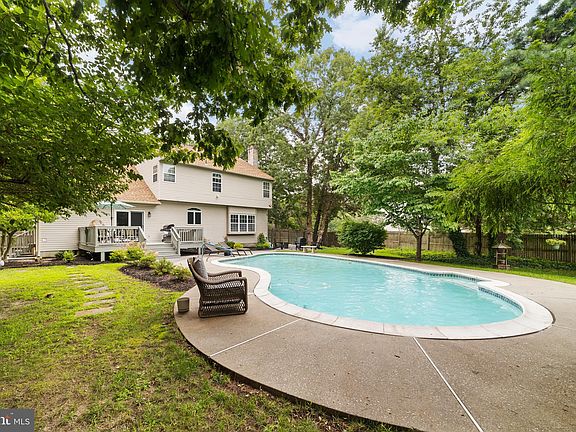 This stunning 4-bedroom, 2.5-bath Colonial has been lovingly maintained and thoughtfully updated, offering comfort, style, and space both inside and out. Step inside to find gleaming hardwood floors flowing through the main living areas and second floor, paired with soaring 9-foot ceilings and a dramatic 2-story foyer. The formal living and dining rooms are filled with natural light thanks to tall windows, with the dining room highlighted by elegant picture frame molding and an adjacent butler's pantry with an additional walk-in pantry for all of your kitchen storage needs. The spacious family room features a cozy brick fireplace and overlooks the backyard, opening directly to the beautifully upgraded eat-in kitchen. Here you’ll enjoy 42” cabinetry with soft-close doors, a center island, quartz countertops, and stainless steel appliances with an eating area with sliders to the back deck, and just off this space, you’ll find the laundry/mud room, a powder room, and access to the oversized 2-car garage. Upstairs, the primary suite is a true retreat with vaulted ceilings, a private sitting area or office, a generous walk-in closet, and an ensuite bath complete with a soaking tub. Three additional bedrooms share a well-appointed hall bath. The exterior is just as impressive, boasting a brick front façade, a side-entry garage, and a large fenced backyard designed for entertaining. Enjoy a sparkling custom gunite pool, a newer deck, and a paver patio with a fire pit—all set on 1.5 acres that backs to peaceful, wooded open space for added privacy. The full basement, with its high ceilings, is ready to be finished into additional living space. Ideally situated for commuters, this home offers quick access to Route 70 and is within easy reach of Philadelphia, NYC, Atlantic City, and the Jersey Shore. Don’t miss the chance to make this exceptional property yours!