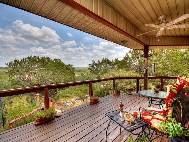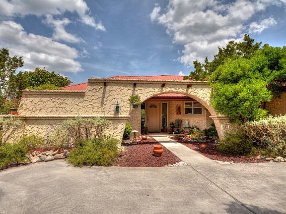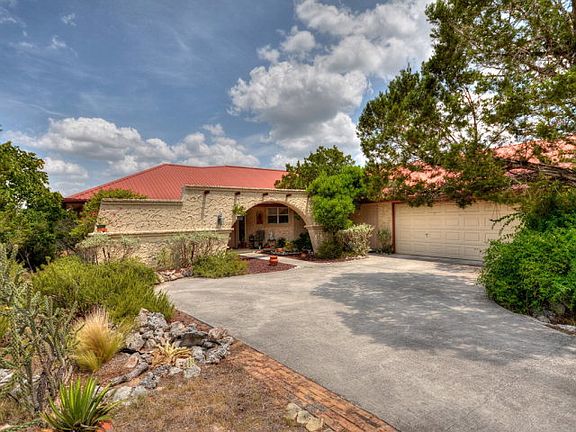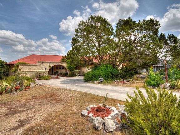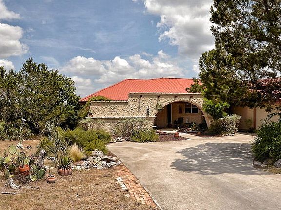 Spectacular View,floor to ceiling windows & deck across the back of the house,long distance views. Unique stucco finish with Arches shading the front porch. Casita in the Hill Country!Metal roof & xeriscaped yard provides easy maintenance year round.2 masters suites with adjoining baths on opposite sides of the house. Convenient kitchen with pantry and easy access to utility room with folding table&upper and lower storage. Additional counters, cupboard & sink in the 2 car garage.Unique and what a view!