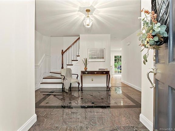 Fabulous home! TURN KEY - NOTHING TO DO- completely RENOVATED in 2013! Drive up the newly paved driveway to this attractive COLONIAL style home, set back amongst towering trees surrounded by lovely gardens and LEVEL BACK YARD. The blue stone walkway and inviting front porch portico welcome you into the spacious foyer with sparkling marble/granite tile flooring. The front formal rooms lead you to the expansive completely remodeled kitchen with custom white cabinetry, granite countertops, wine chiller & top of the line kitchen appliances including a Wolf GAS Range. Slider glass doors in the breakfast table area open directly out to the enormous pressure treated deck, perfect for summer barbecues. The sun filled cathedral ceiling family room offers 2 large skylights and a perfect spot to enjoy family movie night around the wood burning fireplace. All bedrooms including the Master are located on the 2nd floor, with 2 new large bathrooms both with dual sinks, marble floors/new fixtures. Special features of the home include: Surprise GREAT ROOM over garage- perfect for play, exercise/private office, custom wainscot, hardwood floors, newer windows, newer AC system, new architectural roof, whole house propane generator, newer water softening system. Unfinished lower level offers storage and can easily be finished by the next Owner. Enjoy living in the heart of charming quintessential Redding CT . AWARD WINNING REDDING SCHOOLS - school bus picks up right at base of driveway!